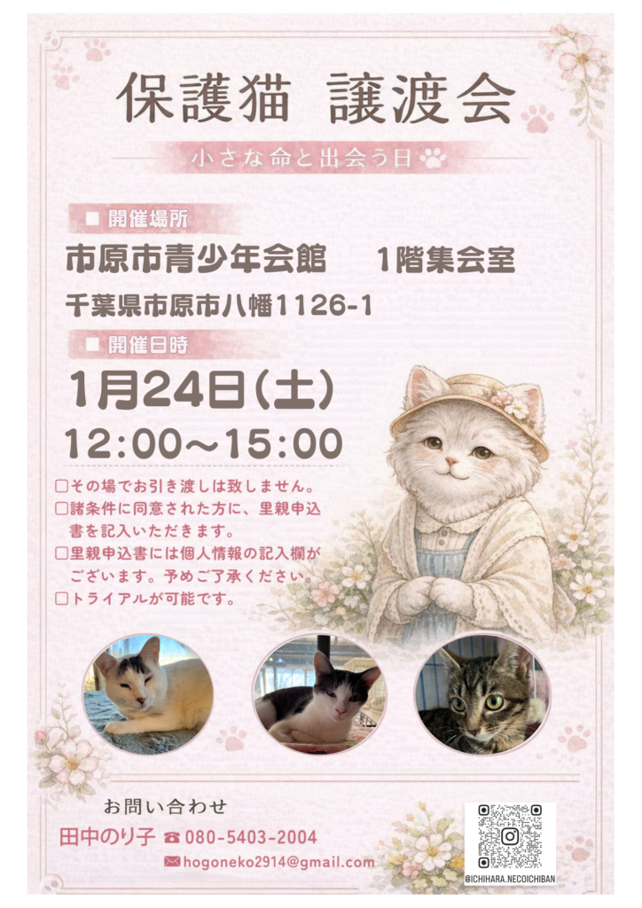 【ご連絡先】 田中のり子✉hogoneko2914@gmail.com